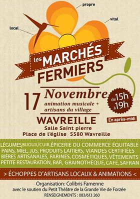 __Il y aura comme d'habitudes les producteurs du marché (des légumes, pain, fromage vache, chèvre, brebis, miel, farine produits d'entretiens, cosmétiques, safran, café, épicerie du commerce équitable... le bar avec les bières de la brasserie de la Lesse, petites restauration.)