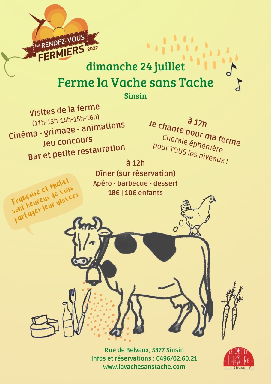*_Dans notre magasin de producteurs "Fermes en vie"_*(Place aux Foires 15 à Marche en Famenne) jeudi: *fermé car ferler * vendredi: *12h-18h30* Samedi: *9h-14h* * * *et en ligne sur la coopérative cocoricoop:* * * *https://eshop.cocoricoop.be/listcat https://eshop.cocoricoop.be/listcat * * https://eshop.cocoricoop.be/listcat**Nous vous y attendons nombreux!* * * *Aussi ce dimanche,* *C'est la fête à _la vache sans tache à SINSIN!_* *dés midi, venez passer une journée* * chez Fanfan et Michèle! Nos collègue de Fermes en vie. * *info en pj! *